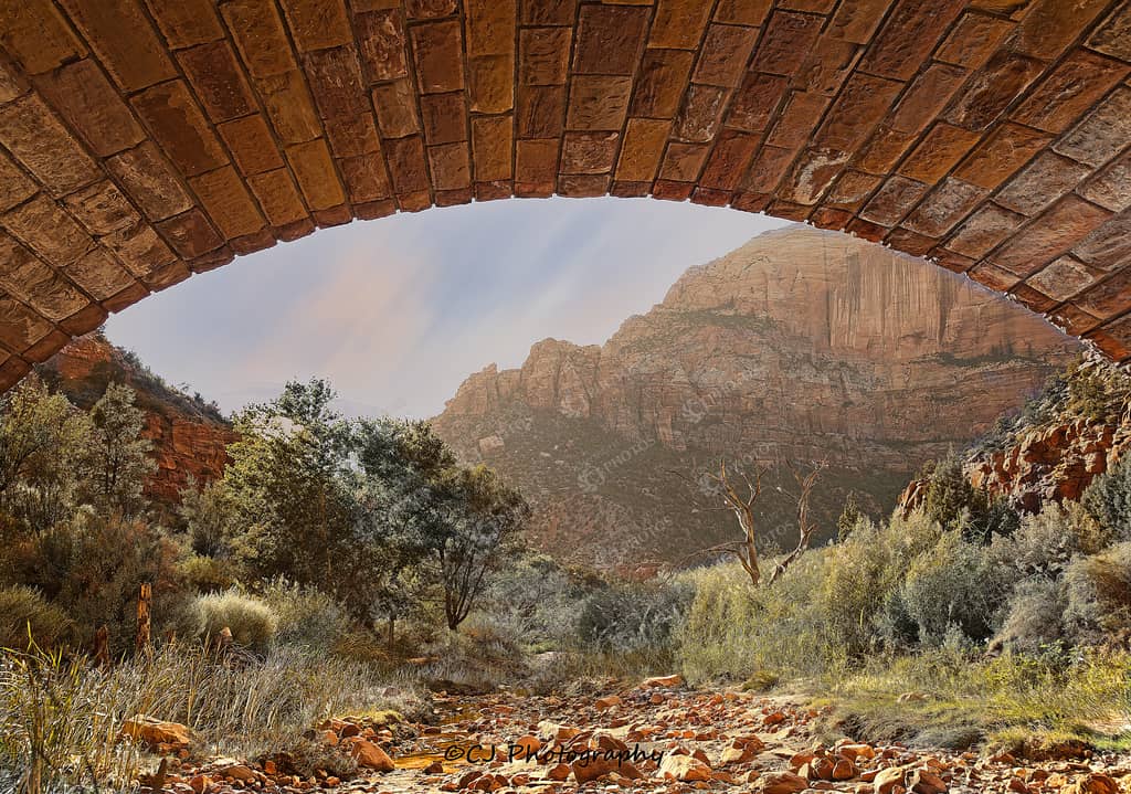Sunset Zion under Bridge